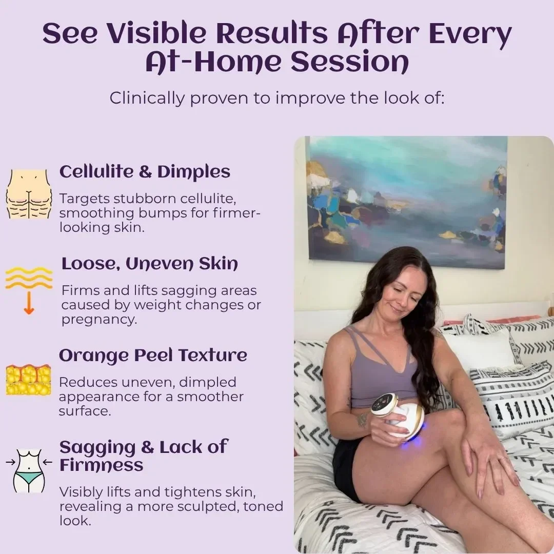 I’ve tried multiple tools before — massage rollers, creams, even red light panels — but nothing compares to this. The combo of suction, heat, and light therapy is genius. My skin looks and feels way more even, especially around my thighs and lower belly.
