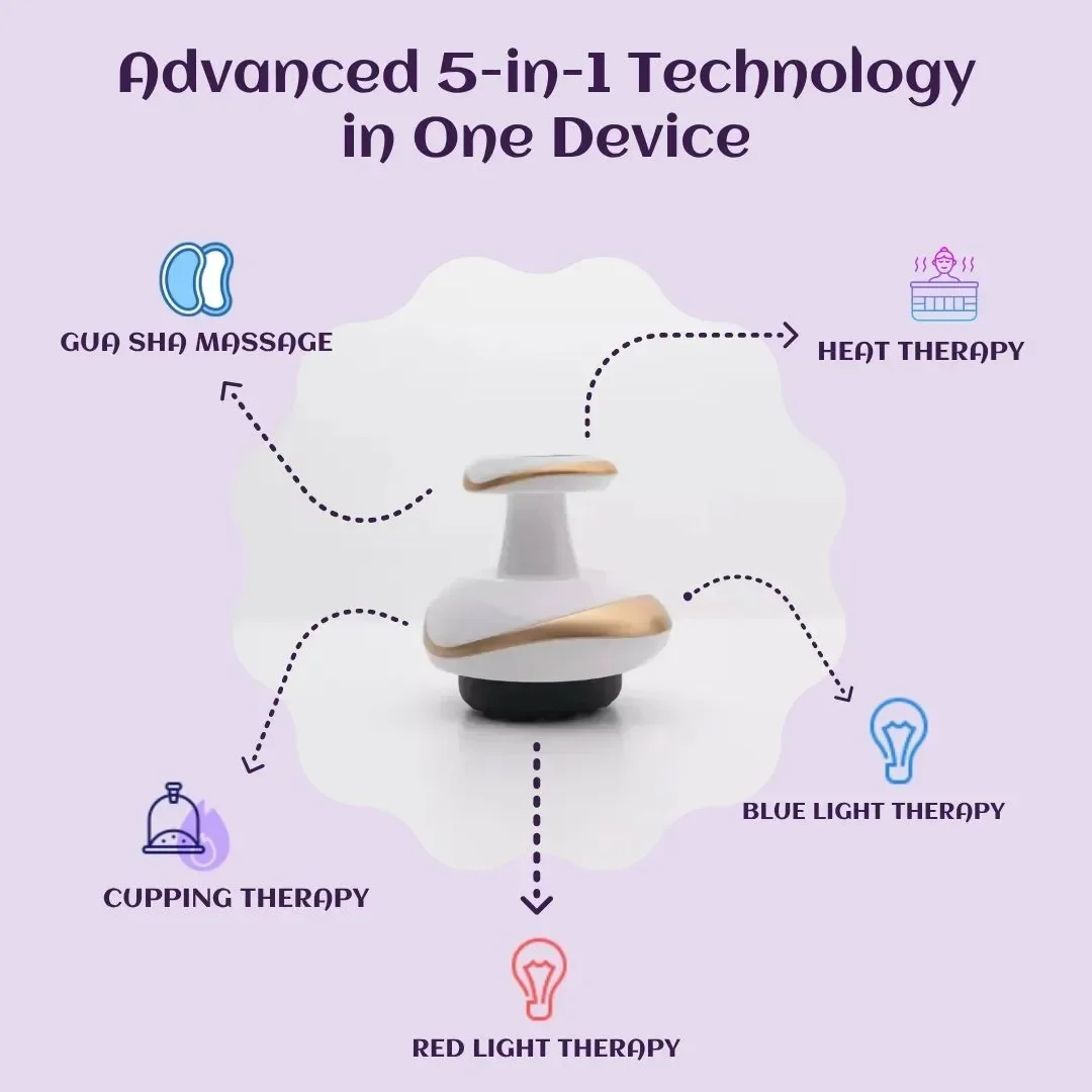 CelluBloom® combines 5 powerful technologies - dynamic cupping, Gua Sha massage, red-light therapy, blue-light therapy, and soothing heat - to deliver full-body rejuvenation.