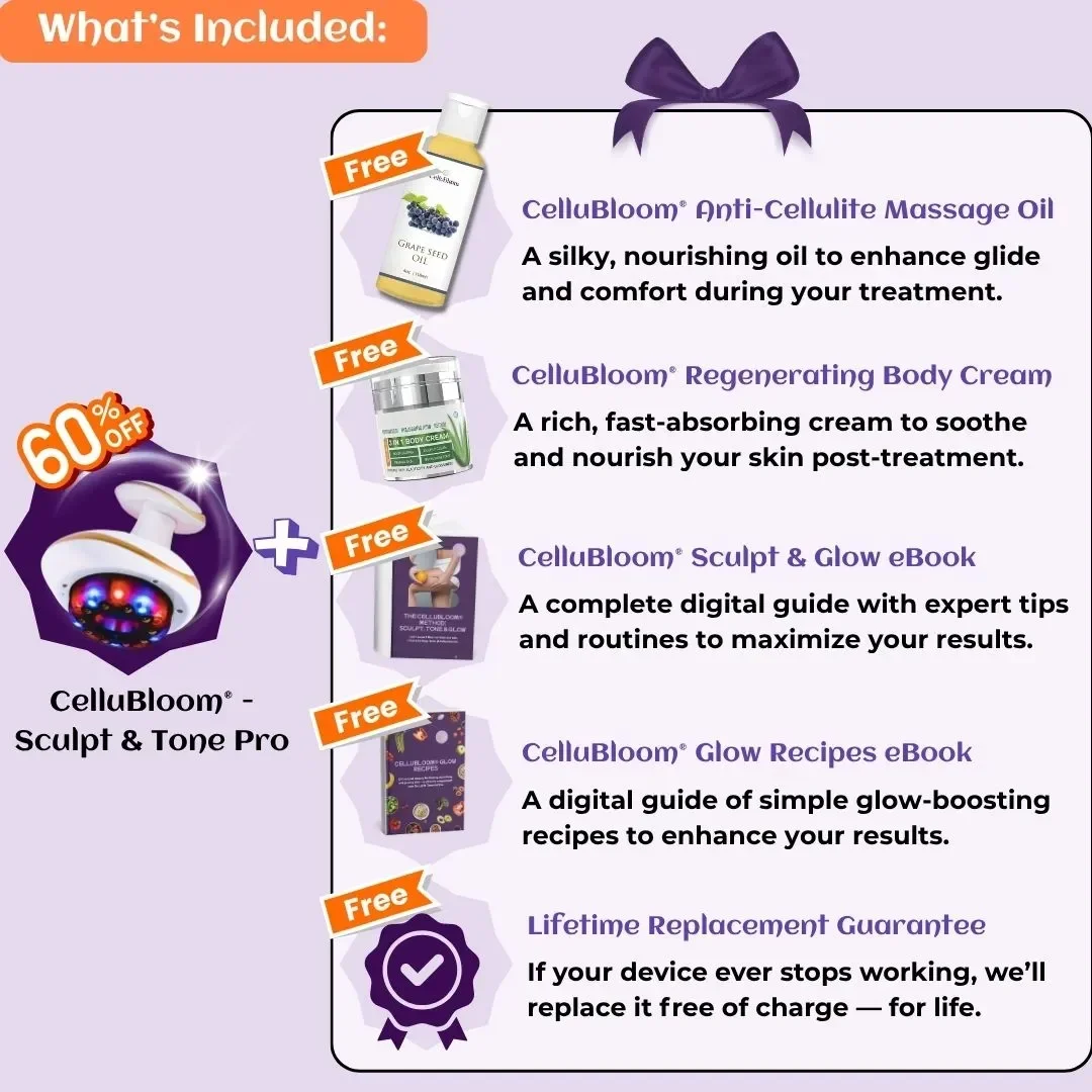💜 1x CelluBloom® Sculpt & Tone Pro — our 5-in-1 device to reduce cellulite, firm skin, and boost your glow